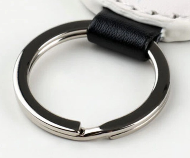 傷や汚れに強いレザー合皮を使用し、柔らかい触り心地が特徴の「楕円型キーホルダー」。